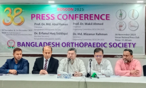 ঢাকা: বাংলাদেশ অর্থোপেডিক সোসাইটির ৩৮তম বার্ষিক বৈজ্ঞানিক কনফারেন্স ‘বসকন-২০২৫’ আগামী ৩০ নভেম্বর থেকে ১ ডিসেম্বর অনুষ্ঠিত হবে। শুক্রবার (২৮ নভেম্বর) সকাল ১১টায় রাজধানীর জাতীয় প্রেস ক্লাবে বাংলাদেশ অর্থপেডিক সোসাইটি আয়োজিত […]