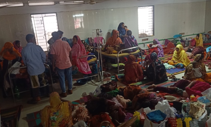 চাঁপাইনবাবগঞ্জ: চাঁপাইনবাবগঞ্জ ২৫০ শয্যা বিশিষ্ট জেলা হাসপাতালে হামের উপসর্গ নিয়ে মোট ১০৪ জন শিশু ভর্তি রয়েছে। ক্রমবর্ধমান রোগীর চাপ সামাল দিতে একদিকে যেমন আলাদা ওয়ার্ড খোলা হয়েছে, অন্যদিকে চিকিৎসক ও নার্স সংকটে হিমশিম খাচ্ছে হাসপাতাল কর্তৃপক্ষ।