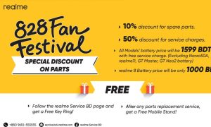 ঢাকা: তরুণদের পছন্দের স্মার্টফোন ব্র্যান্ড রিয়েলমি আবারও ভক্তদের জন্য উৎসাহ এবং উচ্ছ্বাসে ‘রিয়েলমি বার্ষিক ৮২৮ ফ্যান ফেস্টিভ্যাল’এর আয়োজন করছে। এ উপলক্ষ্যে আগামী ৩১ আগস্ট পর্যন্ত রিয়েলমি স্পেয়ার পার্টস বা খুচরা […]