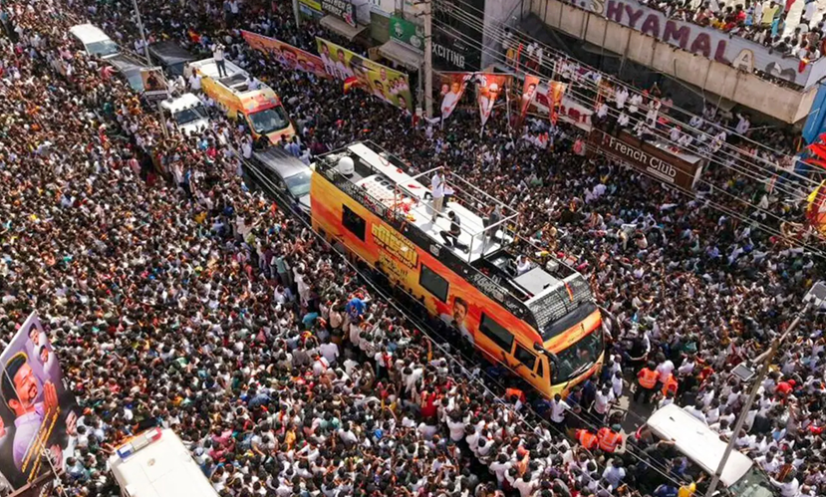 পুলিশের একজন ঊর্ধ্বতন কর্মকর্তা জানিয়েছেন, বিজয়ের আগমন বিলম্বিত হওয়ায় ভিড় নিয়ন্ত্রণের বাইরে চলে যায়। প্রায় ৩০ হাজার মানুষ সেখানে উপস্থিত হয়েছিলেন।