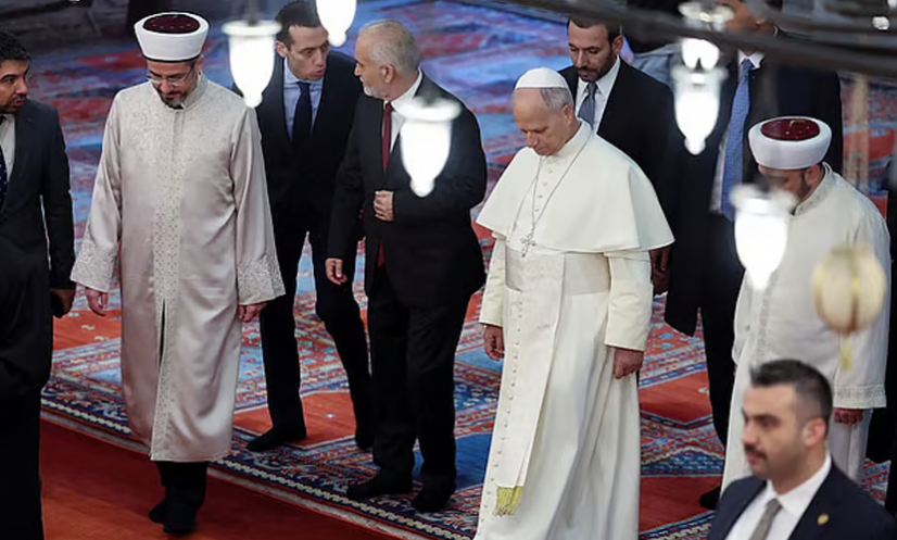 নির্বাচিত হওয়ার পর পোপ লিও চতুর্দশ প্রথমবারের মতো তুরস্কের ইস্তানবুলে নীল মসজিদ (সুলতান আহমেদ মসজিদ) পরিদর্শন করেছেন। সম্মান প্রদর্শনের অংশ হিসেবে তিনি জুতা খুলে মসজিদে প্রবেশ করেন, তবে সেখানে কোনো প্রার্থনা করেননি।