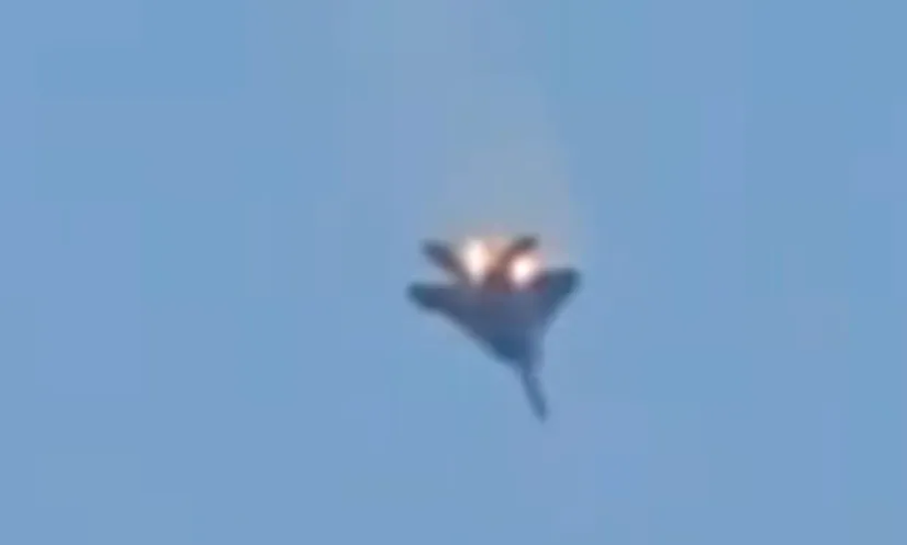 সোমবারের ওই ভিডিওতে দেখা গেছে, একটি যুদ্ধবিমানে আগুন লেগেছে। সে অবস্থায় এটি নিচে পড়ছে।