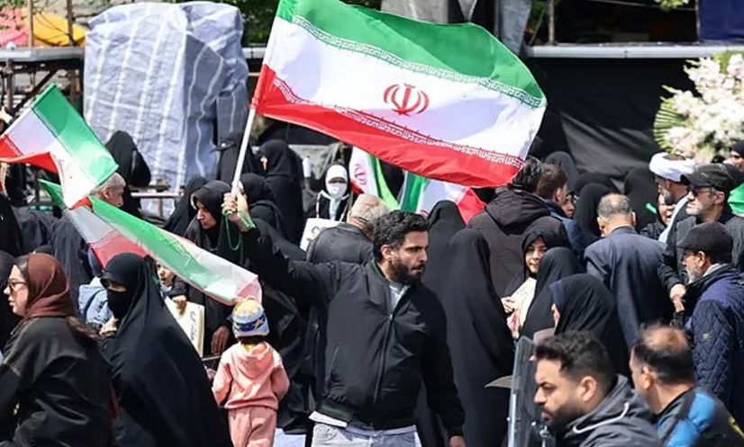 যুদ্ধবিরতি চুক্তির পর তেহরানে পতাকা নাড়ছেন এক ব্যক্তি। ছবি: এএফপি