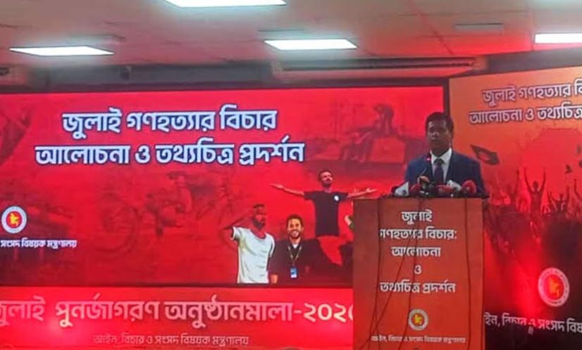 মঙ্গলবার (২৯ জুলাই) দুপুরে রাজধানীর বিচার প্রশাসন প্রশিক্ষণ ইনস্টিটিউটে ‘জুলাই গণহত্যার বিচার, আলোচনা ও তথ্যচিত্র প্রদর্শন’ শীর্ষক অনুষ্ঠানে তিনি এ কথা বলেন। আইন, বিচার ও সংসদবিষয়ক মন্ত্রণালয়ের উদ্যোগে এ আয়োজন করা হয়।