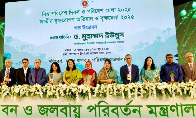 ঢাকা: বিশ্ব পরিবেশ দিবস ও পরিবেশ মেলা ২০২৫ এবং জাতীয় বৃক্ষরোপণ অভিযান ও বৃক্ষমেলা ২০২৫ উপলক্ষ্যে বন্যপ্রাণী সংরক্ষণে জাতীয় পুরস্কার ২০২৫, জাতীয় পরিবেশ পদক ২০২৪, বৃক্ষরোপণে জাতীয় পুরস্কার ২০২৪ এবং সামাজিক বনায়নে সর্বোচ্চ লভ্যাংশপ্রাপ্ত উপকারভোগীদের মাঝে পুরস্কার ও চেক বিতরণ করেন পরিবেশ, বন ও জলবায়ু পরিবর্তন মন্ত্রণালয়ের মাননীয় উপদেষ্টা সৈয়দা রিজওয়ানা হাসান।
