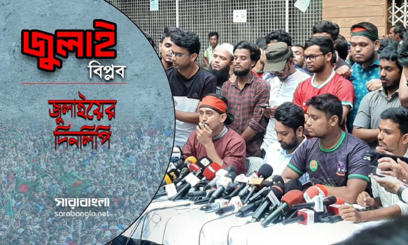 ঢাকা: ১৩ জুলাই (শনিবার) ২০২৪। কোটা সংস্কারের দাবিতে সেদিনও উত্তাল ছিল দেশের শিক্ষাঙ্গন। এদিন ‘গণপদযাত্রা’ কর্মসূচির ঘোষণা দেয় বৈষম্যবিরোধী ছাত্র আন্দোলন। সেইসঙ্গে শিক্ষার্থীদের নামে করা মামলা তুলে নিতে পুলিশকে ২৪ ঘণ্টার আল্টিমেটাম দেন তারা। পাশাপাশি তারা ৩৮ সদস্যের সমন্বয়ক কমিটি ঘোষণা করেন।