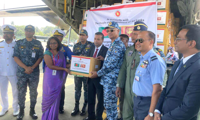 বিজ্ঞপ্তিতে বলা হয়, পররাষ্ট্র মন্ত্রণালয়ের সমন্বয় এবং সশস্ত্র বাহিনী বিভাগের তত্ত্বাবধানে বুধবার দুপুর সাড়ে ১২টায় বাংলাদেশ বিমানবাহিনীর একটি পরিবহন বিমান ত্রাণসামগ্রী নিয়ে শ্রীলঙ্কার বন্দরনায়েকে আন্তর্জাতিক বিমানবন্দরে পৌঁছে।