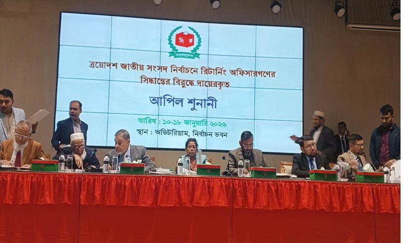শুনানিতে প্রধান নির্বাচন কমিশনার এ এম এম নাসির উদ্দিন ও চার নির্বাচন কমিশনার এসব আপিল আবেদন শুনে নিষ্পত্তি করছেন। এসময় ইসি সচিব আখতার আহমেদ ও আইন শাখার কর্মকর্তারা উপস্থিত ছিলেন।