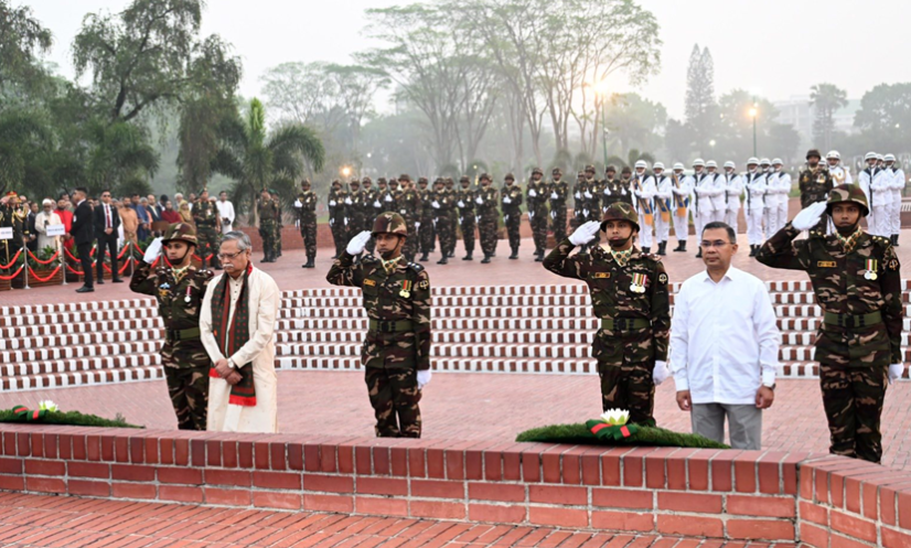 ঢাকা: মহান স্বাধীনতা ও জাতীয় দিবস উপলক্ষ্যে জাতীয় স্মৃতিসৌধ-এ ১৯৭১ সালের বীর শহীদদের প্রতি শ্রদ্ধা জানিয়েছেন রাষ্ট্রপতি মো. সাহাবুদ্দিন এবং প্রধানমন্ত্রী তারেক রহমান।