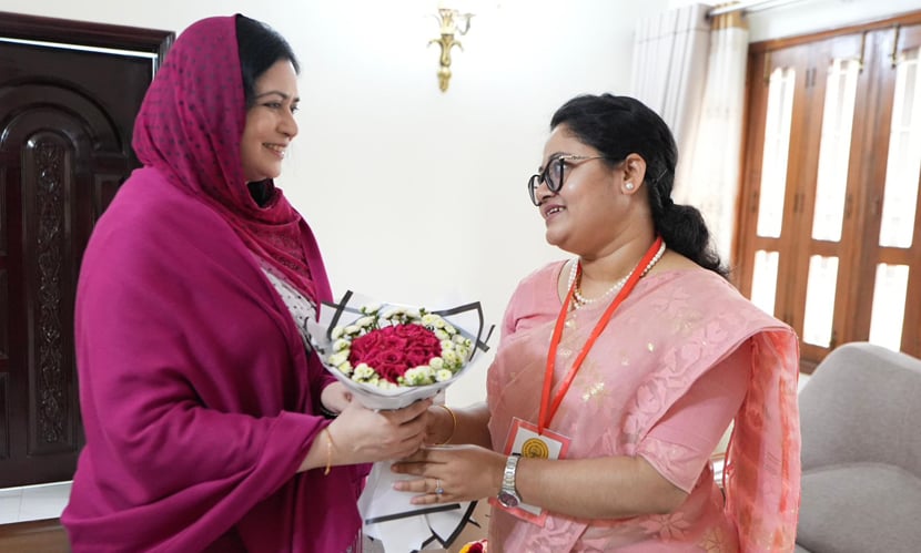ডা. জুবাইদা রহমানকে ফুলেল শুভেচ্ছা জানান জেলার অতিরিক্ত জেলা প্রশাসক সালমা আক্তার।
