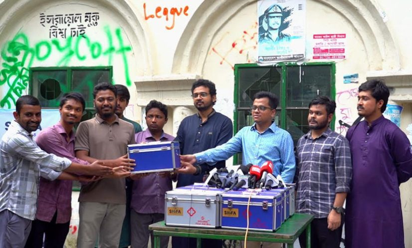 বুধবার (২ জুলাই) ঢাকা বিশ্ববিদ্যালয়ের মধুর ক্যান্টিনে আয়োজিত এক অনুষ্ঠানে প্রতিটি হলের প্রতিনিধিদের হাতে এসব ফার্স্ট এইড বক্স তুলে দেন ঢাবি শাখা সভাপতি এস এম ফরহাদ।