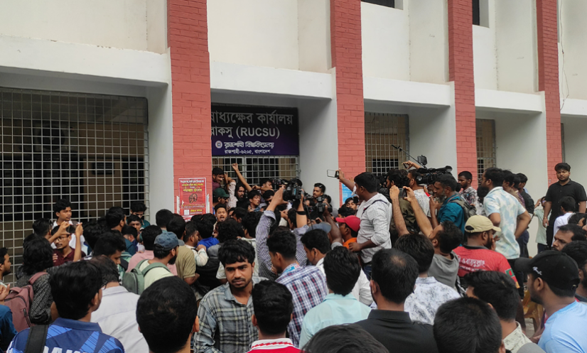 রোববার (৩১ আগস্ট) সকালে শাখা ছাত্রদলের সভাপতি সুলতান আহমেদ রাহীর নেতৃত্বে রাকসু নির্বাচন কমিশন অফিসে ভাঙচুর চালানো হয়। চেয়ার-টেবিল ভেঙে দেওয়ার পর তারা অফিসে তালা ঝুলিয়ে অবস্থান নেন।