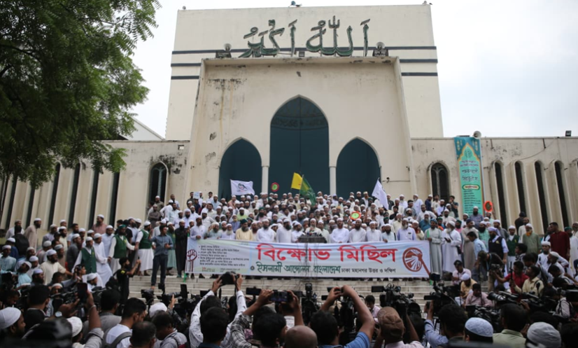 ঢাকা: পিআর পদ্ধতিতে নির্বাচনসহ পাঁচ দফা দাবিতে রাজধানীর বায়তুল মোকাররম জাতীয় মসজিদের উত্তর গেটে বিক্ষোভ কর্মসূচি পালন করছে ইসলামী আন্দোলন বাংলাদেশ।