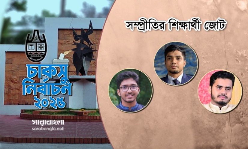 বৃহস্পতিবার (১৮ সেপ্টেম্বর) বিকেল ৩টায় বিশ্ববিদ্যালয়ের জারুলতলায় ‘সম্প্রীতির শিক্ষার্থী জোট’ নামে এ প্যানেল ঘোষণা করেন ছাত্রশিবিরের কেন্দ্রীয় মানবসম্পদ বিষয়ক সম্পাদক সাইদুল ইসলাম।