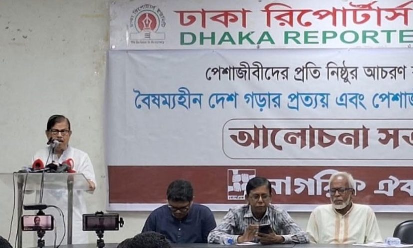 বৃহস্পতিবার (১৬ অক্টোবর) দুপুরে ঢাকা রিপোর্টার্স ইউনিটির (ডিআরইউ) শফিকুল কবির মিলনায়তনে নাগরিক ঐক্যের আয়োজিত এক আলোচনা সভায় সভাপতির বক্তব্যে তিনি এ মন্তব্য করেন।
