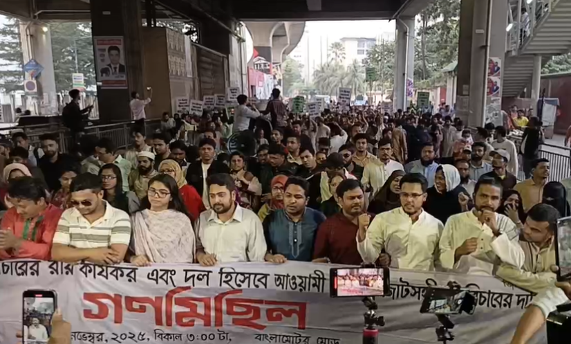 ঢাকা: শেখ হাসিনার বিচার কার্যকর এবং দল হিসেবে আওয়ামী লীগ ও তাদের জোটসঙ্গীদের বিচারের দাবিতে মিছিল করেছে জাতীয় নাগরিক পার্টির (এনসিপি) ঢাকা মহানগর শাখা।