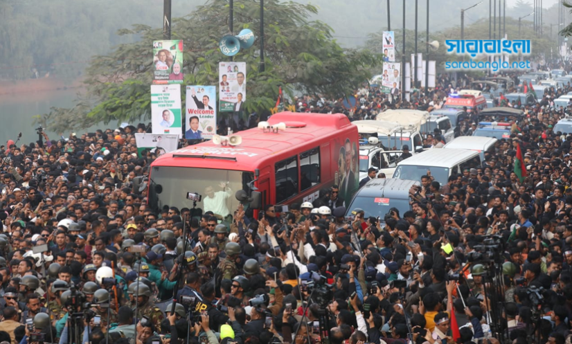 শুক্রবার (২৬ ডিসেম্বর) জুমার নামাজ শেষে তিনি গুলশানের বাসভবন থেকে প্রথমে রাজধানীর শেরেবাংলা নগরে অবস্থিত শহিদ জিয়াউর রহমানের কবর জিয়ারত করেন। এরপর লাল-সবুজ রঙের বুলেটপ্রুফ বাসে করে সাভারের জাতীয় স্মৃতিসৌধের পথে যাত্রা করেন তিনি।