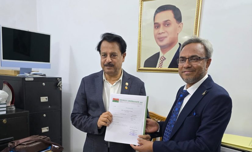 বেগম খালেদা জিয়ার এপিএস এবিএম আবদুস সাত্তারের কাছ থেকে দলের মনোনয়ন ফরম নিচ্ছেন কবির আহমেদ ভুইয়া। ছবি: সংগৃহীত