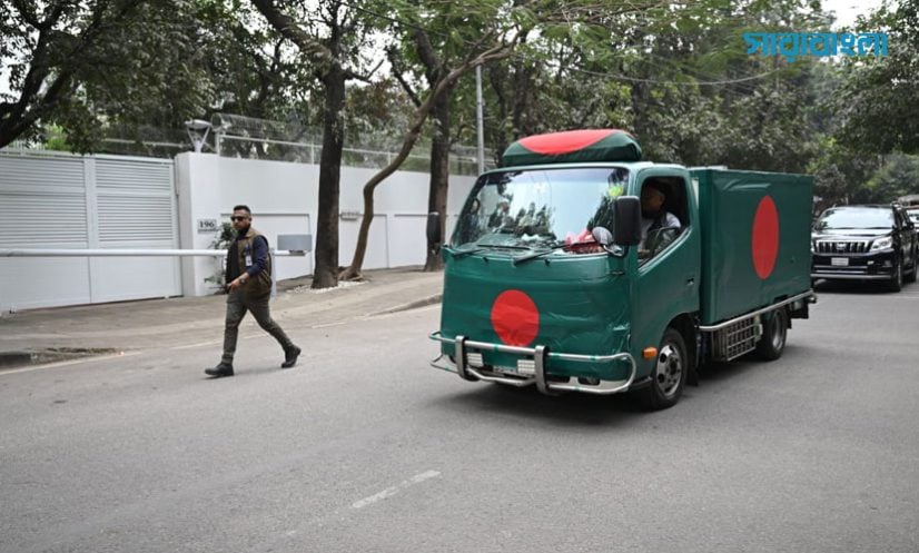সেনাবাহিনী, বর্ডার গার্ড বাংলাদেশ (বিজিবি), র্যাপিড অ্যাকশন ব্যাটালিয়ন (র্যাব) ও পুলিশের কড়া নিরাপত্তায় জাতীয় পতাকায় মোড়ানো একটি বিশেষ অ্যাম্বুলেন্সে মরদেহ বহন করা হচ্ছে।