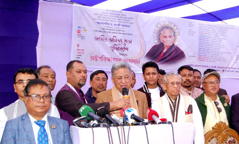 ড. জ্ঞানশ্রী মহাথেরোর দর্শন অনুযায়ী জাতি ধর্ম বর্ণ নির্বিশেষে বাংলাদেশ এক জায়গায় থাকবে বলে মন্তব্য করেন আমীর খসরু।