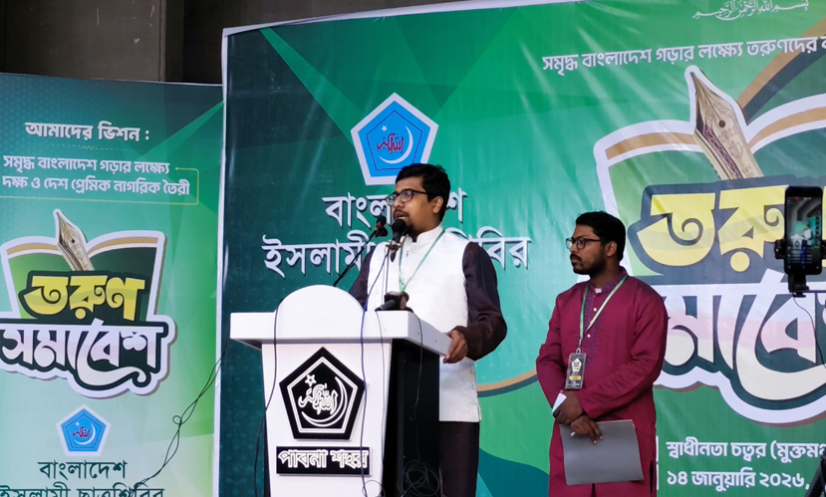 বুধবার (১৪ জানুয়ারি) বিকেলে পাবনা শহরের স্বাধীনতা চত্বর (মুক্তমঞ্চ) ইসলামী ইসলামী ছাত্রশিবির পাবনা শহরে শাখার আয়োজিত তরুণ সমাবেশে প্রধান অতিথির বক্তব্যে তিনি এসব কথা বলেন।