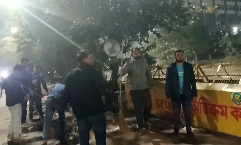 রাতে কর্মসূচি শেষ হওয়ার পর পরই ছাত্রদলের নেতাকর্মীদের ঝাড়ু ও বস্তা হাতে পরিচ্ছন্নতা অভিযানে নামতে দেখা যায়।
