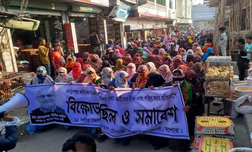 বুধবার (৪ ফেব্রুয়ারি) বিকেলে জামায়াতের চৌগাছা নারী শাখার উদ্যোগে স্থানীয় কামিল মাদরাসা মাঠে বিক্ষোভ সমাবেশ শুরু হয়। সমাবেশ শেষে নারী কর্মীদের বিক্ষোভ মিছিলটি শহরের বিভিন্ন সড়ক প্রদক্ষিণ করে একই স্থানে গিয়ে শেষ হয়।