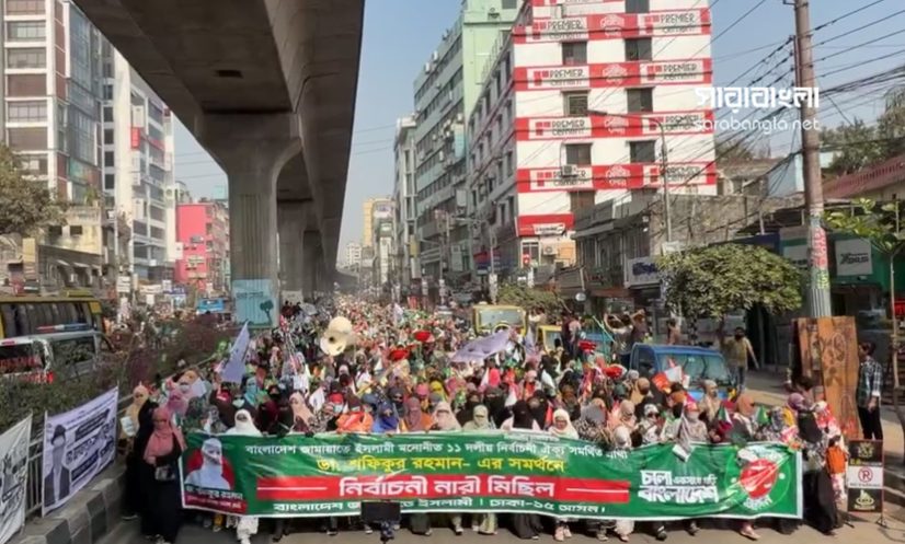 ঢাকা: রাজধানীর মিরপুরে ঢাকা-১৫ আসনে ১১ দলীয় নির্বাচনি ঐক্যের প্রার্থী জামায়াতে ইসলামীর আমির ডা. শফিকুর রহমানের সমর্থনে দাড়িপাল্লা প্রতিক নিয়ে মাঠে নেমেছেন হাজার হাজার নারী কর্মী।
