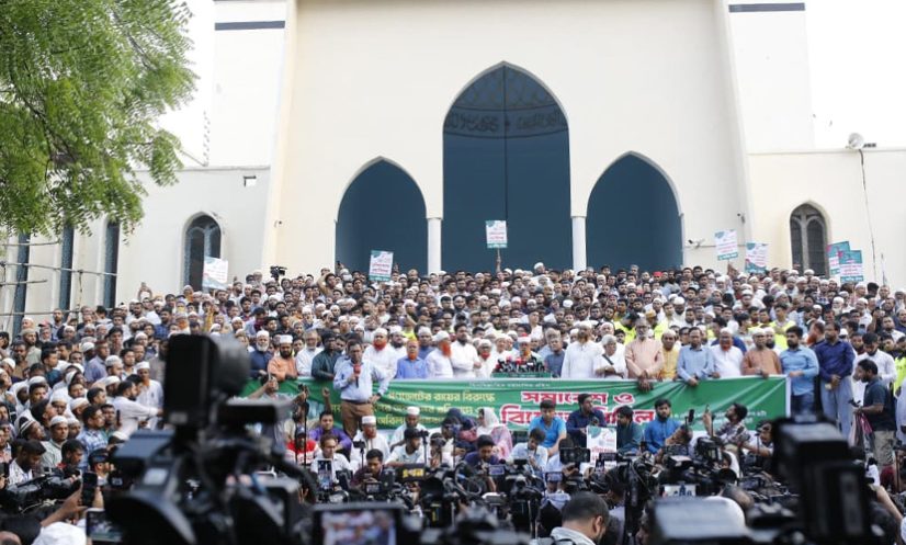 বায়তুল মোকাররমের সামনে গণভোট ইস্যুতে ১১দলীয় ঐক্য আয়োজিত বিক্ষোভ। ছবি: সারাবাংলা