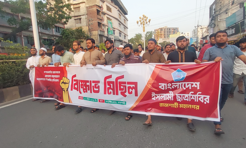 এর আগে, বিকেল ৫টায় নগরীর যাদুঘর মোড় থেকে বিক্ষোভের সূচনা করে শহরের গুরুত্বপূর্ণ সড়কগুলো প্রদক্ষিণ করে সাহেব বাজারের জিরো পয়েন্টে এসে এ সংক্ষিপ্ত সমাবেশ করেন তারা।