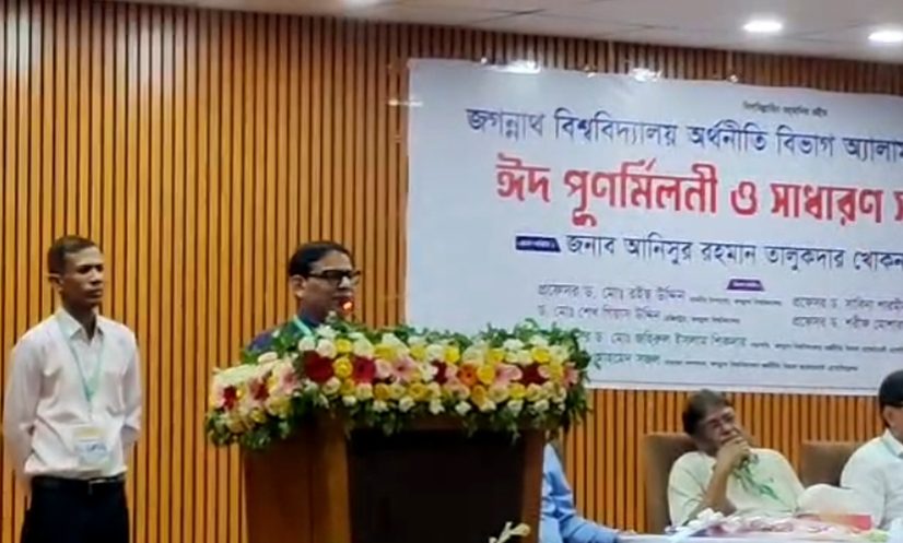 আনিসুর রহমান তালুকদার বলেন, ‘জগন্নাথ বিশ্ববিদ্যালয়ের অর্থনীতি বিভাগ আমাদের পরিচয়, আমাদের গর্ব। আমরা যারা এখানে পড়েছি বা পড়ছি, সবাই এই পরিবারের অংশ। বর্তমান ক্যাম্পাসের শিক্ষার পরিবেশ উন্নত করতেও আমরা সর্বোচ্চ সহযোগিতা করব। আমরা নতুন করে প্রতিজ্ঞা করছি, আমরা আমাদের বিভাগ ও বিশ্ববিদ্যালয়ের উন্নয়নে ঐক্যবদ্ধভাবে কাজ করব।’