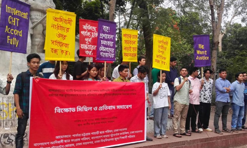 পাহাড়ী ছাত্র পরিষদ ঢাকা বিশ্ববিদ্যালয় শাখার সাধারণ সম্পাদক শান্তিময় চাকমার সঞ্চালনায় সমাবেশটিতে সভাপতিত্ব করেন বাংলাদেশ আদিবাসী ছাত্র সংগ্রাম পরিষদের সভাপতি অনন্ত তঞ্চঙ্গ্যা।