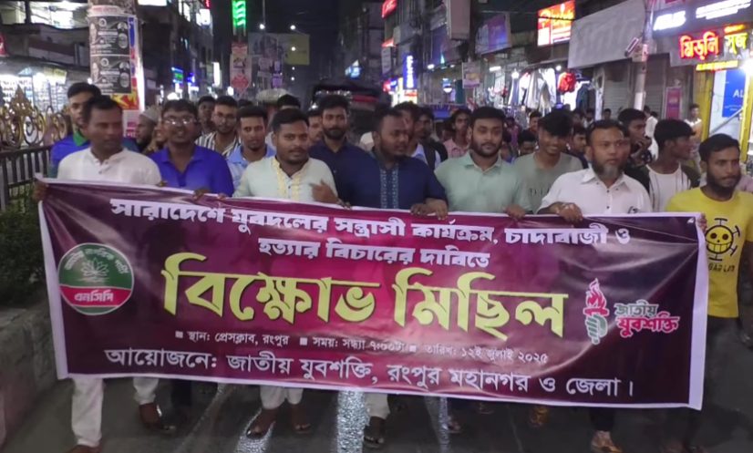 শনিবার (১১ জুলাই) রাত সাড়ে ১০টায় এনসিপির জেলা ও মহানগর শাখার নেতাকর্মীরা নগরীর প্রেসক্লাব চত্বর থেকে একটি বিক্ষোভ মিছিল বের করে। এতে সাধারণ শিক্ষার্থীসহ বিভিন্ন শ্রেণিপেশার মানুষ অংশ নেন। মিছিলটি নগরির বিভিন্ন সড়ক প্রদক্ষিণ করে শাপলা হয়ে পুনরায় প্রেসক্লাব চত্বরে এসে শেষ হয়।