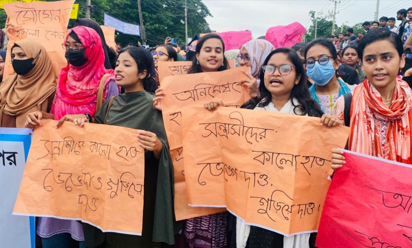 সমাজকর্ম বিভাগের শিক্ষার্থী রিয়াদুল জান্নাত মারিয়া হুশিয়ারি দিয়ে বলেন, এক জুলাইয়ে আমরা স্বৈরাচারী শেখ হাসিনার পতন ঘটিয়েছি, আরেক জুলাইয়ে প্রয়োজনে আমরা এই সন্ত্রাসী-চাঁদাবাজদের পতন ঘটাবো। অবিলম্বে শিক্ষার্থীদের ওপর হামলাকারী সন্ত্রাসীদের গ্রেফতার করার দাবি জানাচ্ছি।