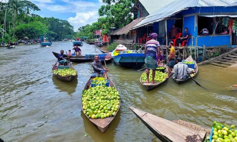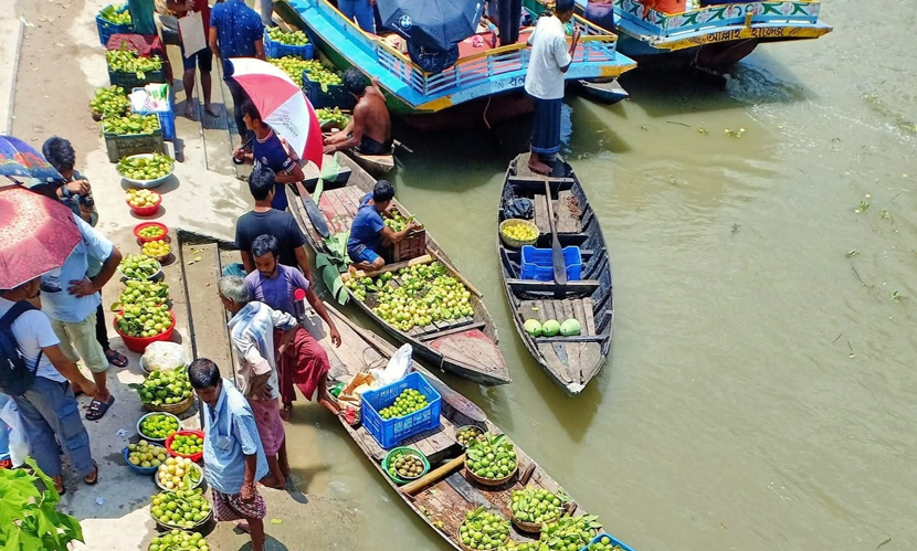 বরিশাল: ঝালকাঠির কীর্ত্তিপাশা ইউনিয়নের ভিমরুলিতে খালের জলে বসে এক ব্যতিক্রমী ভাসমান পেয়ারার হাট। প্রতিদিন সকাল থেকে দুপুর পর্যন্ত সারি সারি নৌকায় চলে টাটকা পেয়ারা বেচাকেনা, যা পুরো এলাকাকে জমজমাট রাখে।