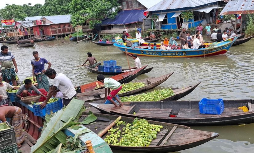 বরিশাল: ঝালকাঠির কীর্ত্তিপাশা ইউনিয়নের ভিমরুলিতে খালের জলে বসে এক ব্যতিক্রমী ভাসমান পেয়ারার হাট। প্রতিদিন সকাল থেকে দুপুর পর্যন্ত সারি সারি নৌকায় চলে টাটকা পেয়ারা বেচাকেনা, যা পুরো এলাকাকে জমজমাট রাখে।