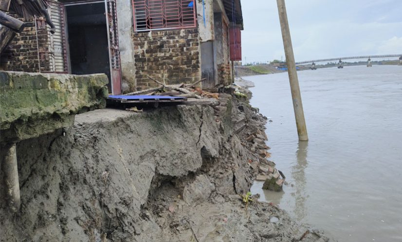 নদীর ধারে থাকা বেড়িবাঁধের প্রায় ২০০ ফুট অংশ বিলীন হয়ে গেছে।