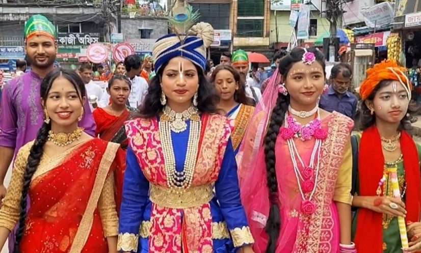টাঙ্গাইলের ধনবাড়ী শ্রী শ্রী রাধাগোবিন্দ সেবাশ্রম এর আয়োজনে ধনবাড়ী শহরের সেবাশ্রমের সামনে থেকে এক বর্ণাঢ্য শোভাযাত্রা বের হয়।