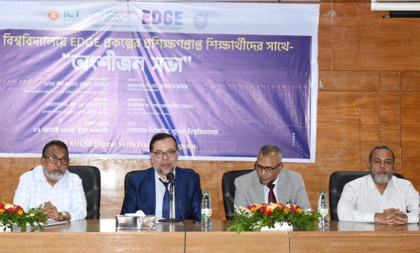 সভায় সভাপতির বক্তব্য দেন খুলনা বিশ্ববিদ্যালয়ের উপাচার্য প্রফেসর ড. মোঃ রেজাউল করিম। তিনি বলেন, ইডিজিই প্রকল্পের মাধ্যমে শুধু খুলনা বিশ্ববিদ্যালয় নয়, বরং বিভিন্ন শিক্ষা প্রতিষ্ঠানের শিক্ষার্থীরাও সফট স্কিল উন্নয়নের প্রশিক্ষণ নিয়েছে। এটি তাদের ক্যারিয়ার ডেভেলপমেন্টে গুরুত্বপূর্ণ ভূমিকা রাখবে।