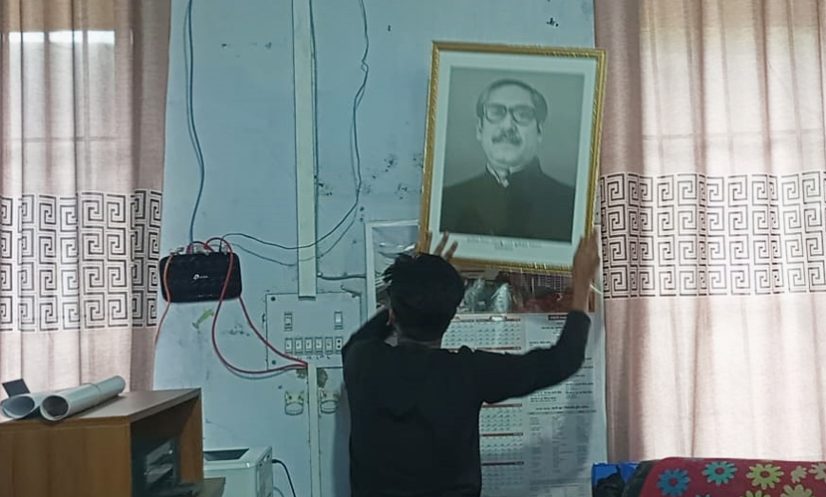 ঢাকা: জগন্নাথ বিশ্ববিদ্যালয়ের (জবি) প্রাণিবিদ্যা বিভাগের চেয়ারম্যানের রুম থেকে বঙ্গবন্ধু শেখ মুজিবুর রহমানের ছবি অপসারণ করা হয়েছে।