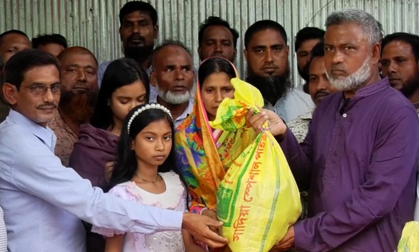 বুধবার (২০ আগস্ট) বিকেলে উপজেলার কুর্শা ইউনিয়নের ঘনিরামপুর ডাঙ্গাপাড়ায় নিহত রূপলালের স্ত্রী ভারতী রাণীর হাতে খাদ্য সামগ্রী তুলে দেয় স্থানীয় বিএনপির নেতারা।