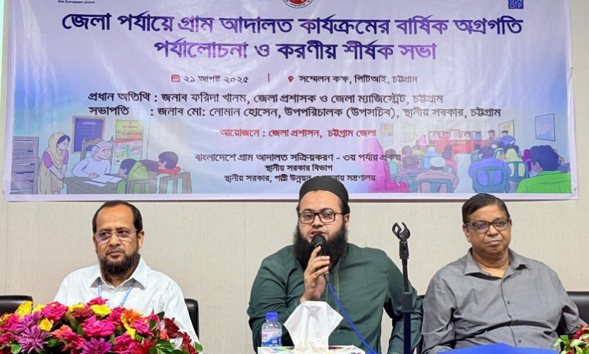বৃহস্পতিবার (২১ আগস্ট) দুপুরে নগরীর প্রাইমারি টিচার্স ইনস্টিটিউট (পিটিআই) মিলনায়তনে ‘চট্টগ্রামে জেলা পর্যায়ে গ্রাম আদালত কার্যক্রমের বার্ষিক অগ্রগতি পর্যালোচনা ও করণীয়’ শীর্ষক সভায় এ তথ্য দেওয়া হয়। চট্টগ্রাম জেলা প্রশাসন এ সভার আয়োজন করে।