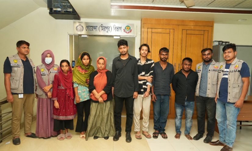 গ্রেফতার সাতজন হলেন- মো. বিপ্লব খান (৩৩), ফারিন তানহা তোফা (২৯), সম্পা আক্তার (২৪), শাহ মোহাম্মদ জোবায়ের অভিক (২৩), মো. আল-মাসুদ (৩২), মোছা. মনিকা আক্তার (১৮) ও মো. আবু সুফিয়ান (২৭)।