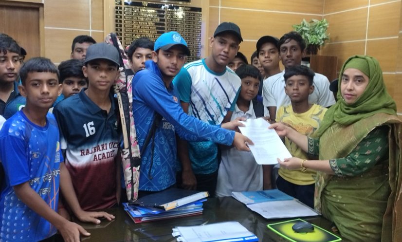 রোববার (২৪ আগস্ট) সকাল সাড়ে ১১টায় জেলা প্রশাসকের কার্যালয়ের সামনে স্থানীয় খেলোয়াড়রা মানববন্ধন শেষে জেলা প্রশাসক সুলতানা আক্তারের কাছে স্মারকলিপি দেন।