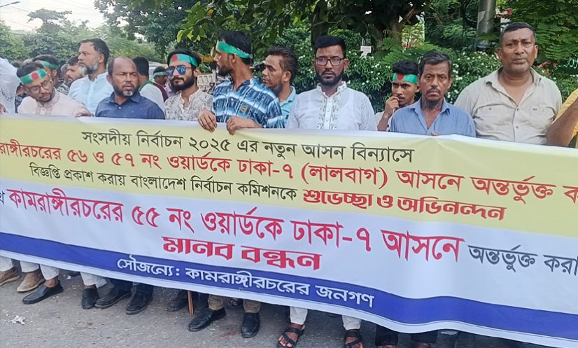 কামরাঙ্গীরচরের জনগণের ব্যনারে একদল এলাকাবাসী ঢাকার দক্ষিণ সিটির ৫৬ ও ৫৭ নাম্বার ওয়ার্ডকে ঢাকা-৭ আসনের সঙ্গে যুক্ত করায় ইসিকে অভিনন্দন জানিয়েছে। একইসঙ্গে তারা ৫৫ নম্বর ওয়ার্ডকেও ঢাকা ৭ আসনের সঙ্গে যুক্ত করার দাবি জানিয়েছে।
