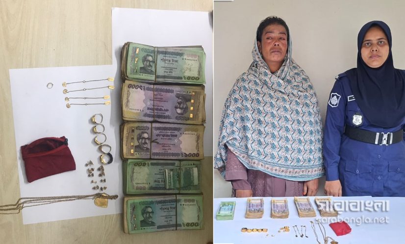 গ্রেফতার তসলিমা আক্তার (৩৫) পূর্ব কাঠগড় গ্রামের মৃত জয়নাল আবেদীনের স্ত্রী। তার ঘরে তল্লাশি করে নগদ ৪ লাখ ৫১ হাজার টাকা এবং ৩ ভরি, ১১ আনা, ২ রতি ওজনের ৫টি সোনার আংটি, ২টি চেইন, ৪ জোড়া কানের দুল ও ২টি নাকফুল জব্দ করা হয়েছে বলে পুলিশ জানিয়েছে।