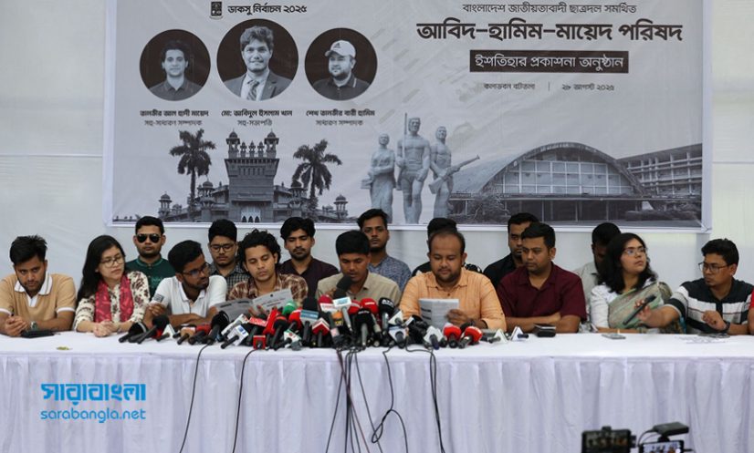 বৃহস্পতিবার (২৮ আগস্ট) বিশ্ববিদ্যালয় ক্যাম্পাসে আয়োজিত এক সংবাদ সম্মেলনে এ ইশতেহার ঘোষণা করা হয়। সংবাদ সম্মেলনে ইশতেহার পাঠ করেন ভিপিপ্রার্থী আবিদুল ইসলাম খান। জাতীয়তাবাদী ছাত্রদলের কেন্দ্রীয় ছাত্রদল সভাপতি ও সাধারণ সম্পাদক এ সময় উপস্থিত ছিলেন।