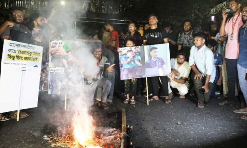 ঢাকা: হোটেল ইন্টারকন্টিনেন্টালের সামনে পুলিশি হামলার প্রতিবাদ ও তিন দফা দাবি আদায়ে মৎস্য ভবন মোড়ে সড়ক অবরোধ করেছেন প্রকৌশল বিশ্ববিদ্যালয়ের শিক্ষার্থীরা। এসময় তারা রমনা বিভাগের উপ-পুলিশ কমিশনার (ডিসি) মাসুদ আলমের কুশপুত্তলিকা পোড়ান।