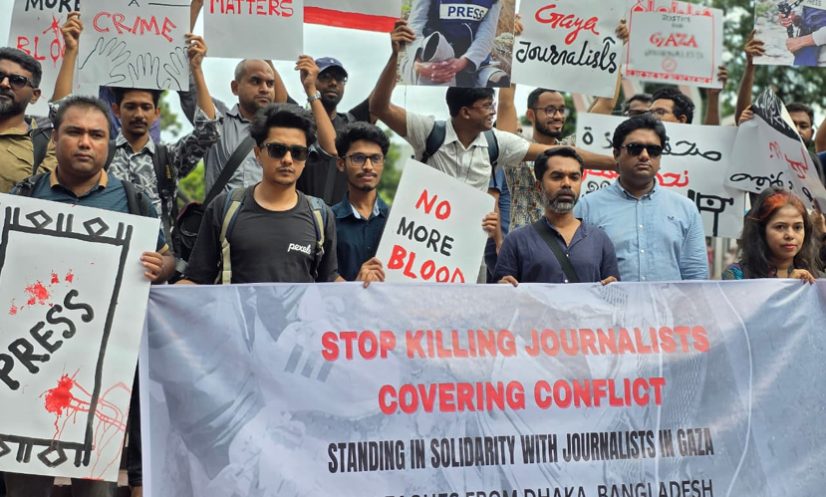 প্রতিবাদ কর্মসূচিতে ২৫ আগস্ট গাজার খান ইউনিসের এক হাসপাতালে ইসরায়েলি হামলায় নিহত অন্তত পাঁচ সাংবাদিকের জন্য গভীর শোক প্রকাশ করা হয়। অংশগ্রহণকারীরা নীরবতা পালন করে নিহত সহকর্মীদের প্রতি শ্রদ্ধা জানান।