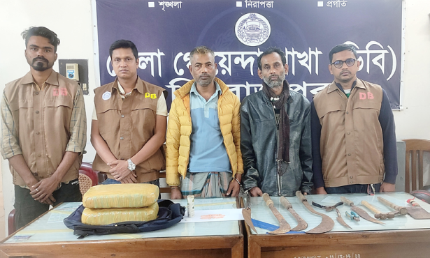 গ্রেফতাররা হলেন, দিনাজপুর জেলার বিরল উপজেলার রামচন্দ্রপুর গ্রামের মাজেদুর রহমান মাসুদ (৪০), ঠাকুরগাঁও সদর উপজেলার ভূল্লী পূর্ব শুকানপুকুরী গ্রামের ইউনুস আলী (৩৮), একই গ্রামের জসিম উদ্দিন (২৬), পঞ্চগড়ের বোদা উপজেলার মাড়েয়া সর্দারপাড়ার অতুল চন্দ্র রায় (৩৮), রফিকুল ইসলাম (৪৫) ও মালামাল ক্রেতা আজিজুল হক (৫০)।